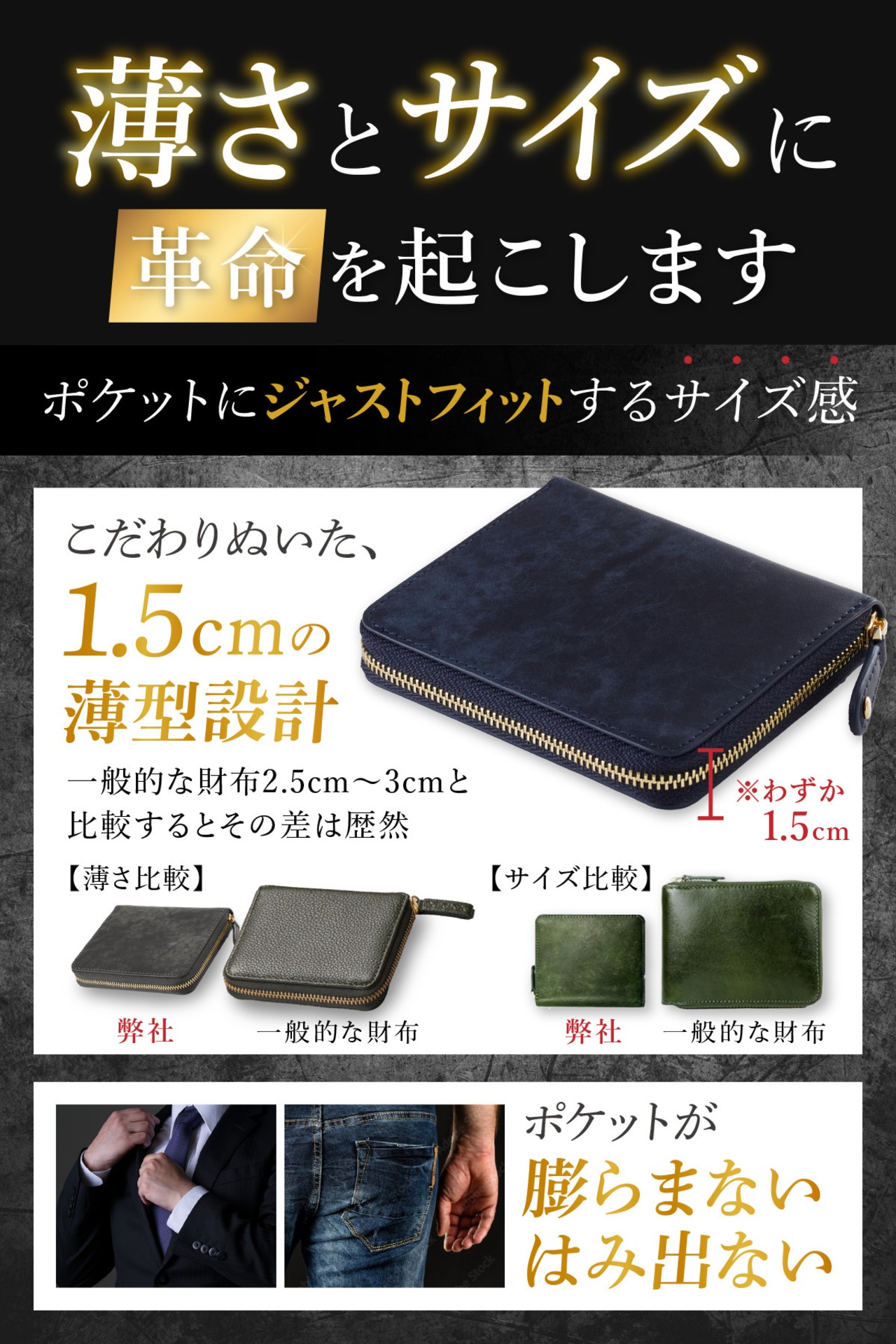 ラウンドファスナー財布として最小クラスでありながら、札20枚・小銭20枚・カード10枚収納可能は充実の収納力。これだけ入れても